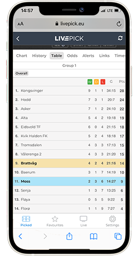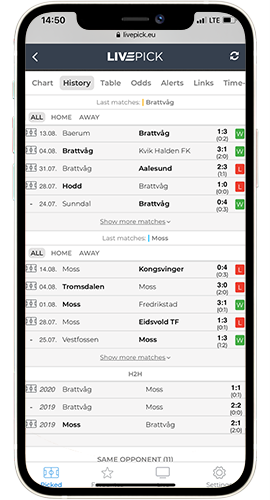 Open match in our application and go through the match in more detail. Our application offers you everything in one place. History, H2H, league table, live and prematch odds, pressure index, last minute pressure and many many more !